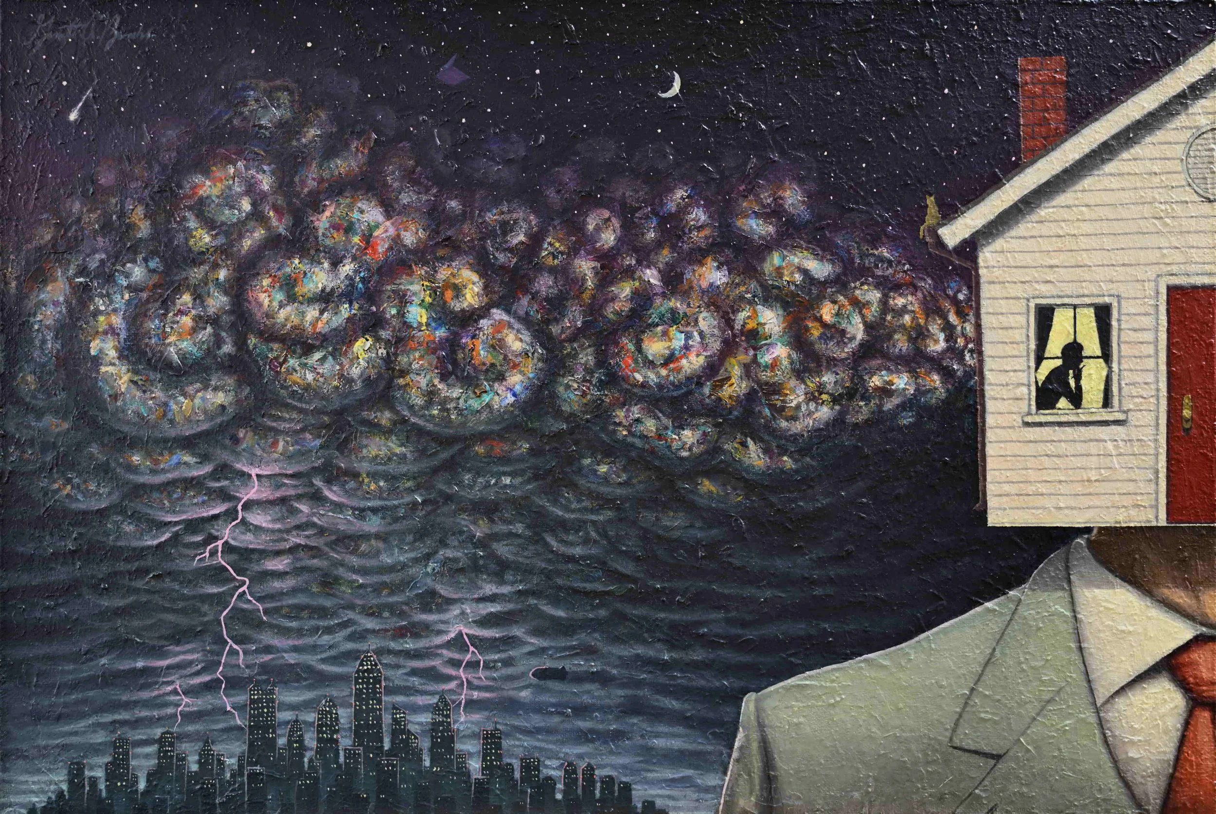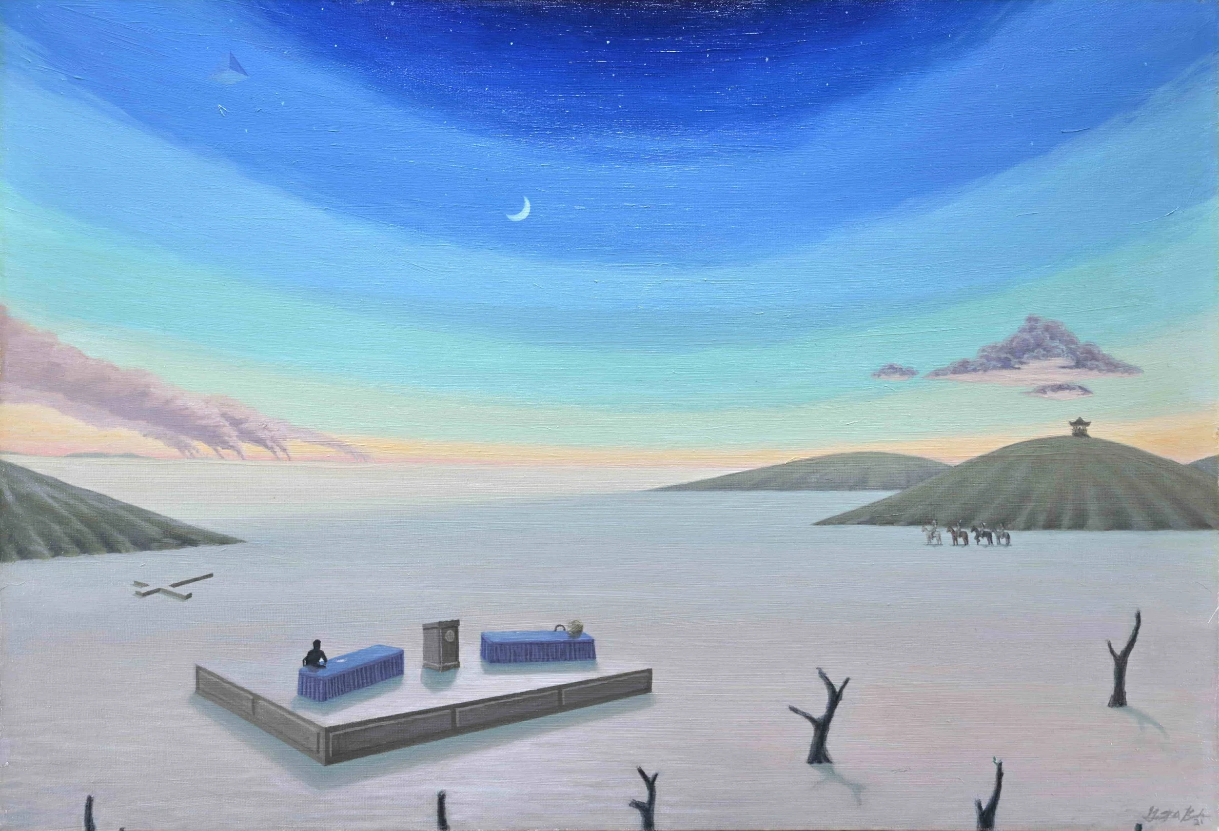 Exile, 2021, oil on canvas - 50 x 72.4 x 2.1 cm